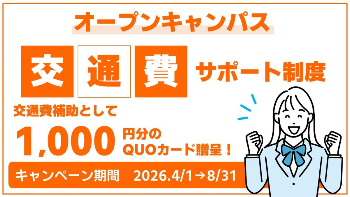 キャンペーン期間中にオープンキャンパスに参加された方には交通費の一部を補助します。